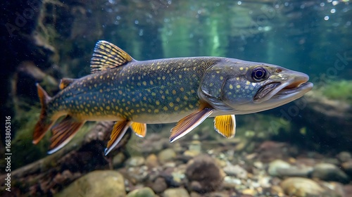 © Habiba Noor Jannat, Fototapeta premium Vibrant brook trout swims in clear river water