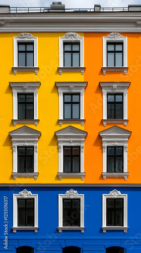Fototapeta premium Vibrant Building Facade Illustration, Yellow and Blue