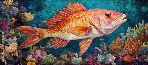 Naklejka premium Vibrant bump head snapper fish swimming elegantly in a colorful coral reef scene with rich blues and vibrant pinks and oranges throughout the underwater landscape