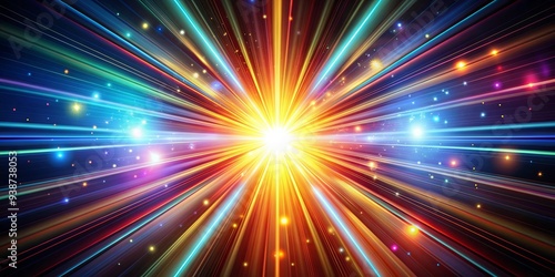 Fototapeta premium Vibrant burst of light beams shining through darkness, abstract, bright, colorful, energy, explosion, glow, illumination