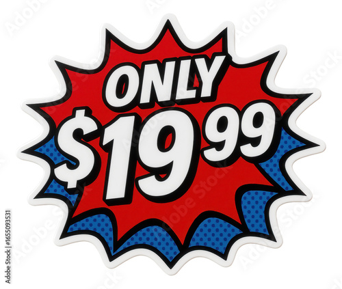 Fototapeta premium Vibrant burst sticker with ONLY $19.99 price tag in bold typography,...