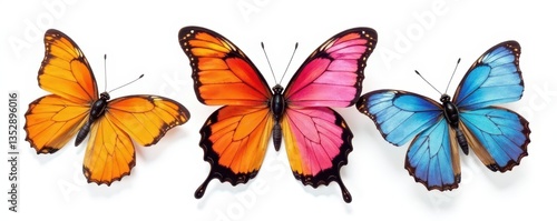 © sawaratch, Obraz premium Vibrant butterflies, assorted species, isolated on pure white background , collection, illustration