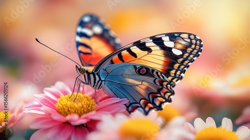 Fototapeta premium Vibrant butterfly feeding on a flower.