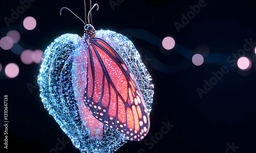 © sakulkarn, Naklejka premium Vibrant Butterfly Glowing in Ethereal Night Background