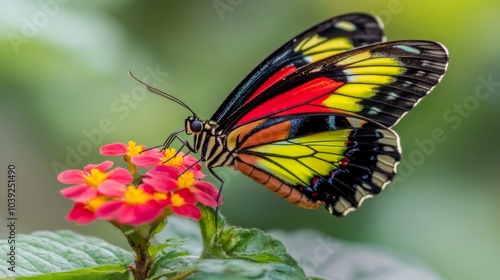 © Plaifah, Fototapeta premium Vibrant Butterfly on Colorful Flower Petals