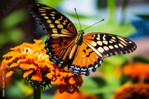 Fototapeta premium Vibrant butterfly on orange flower