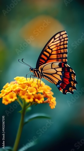 Obraz premium Vibrant Butterfly on Yellow Flower in Nature