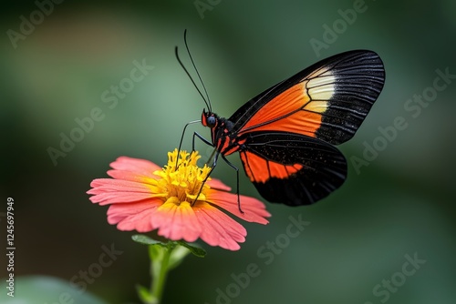 Fototapeta premium Vibrant Butterfly Resting on Colorful Flower Petals in a Lush Garden Setting...