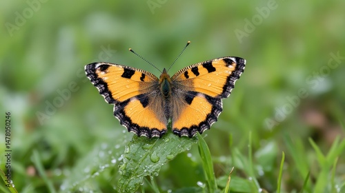 Obraz premium Vibrant butterfly resting on leaf with symmetrical wing pattern close up