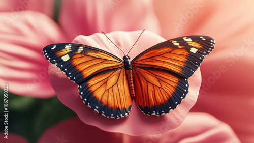 Naklejka premium vibrant butterfly resting on pink flower, showcasing nature beauty