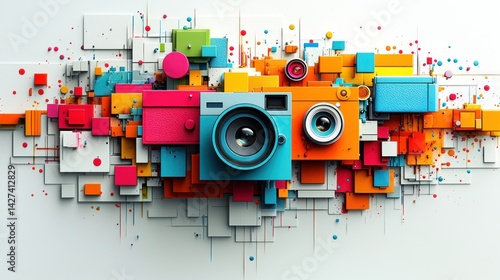 Fototapeta premium Vibrant Camera Collage: A Celebration of Photography and Creativity