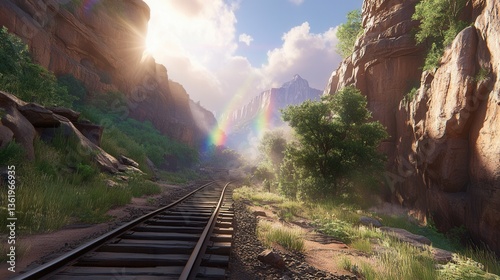 © AddStylerz, Naklejka premium Vibrant Canyon with Rainbows in Sunlit Mist