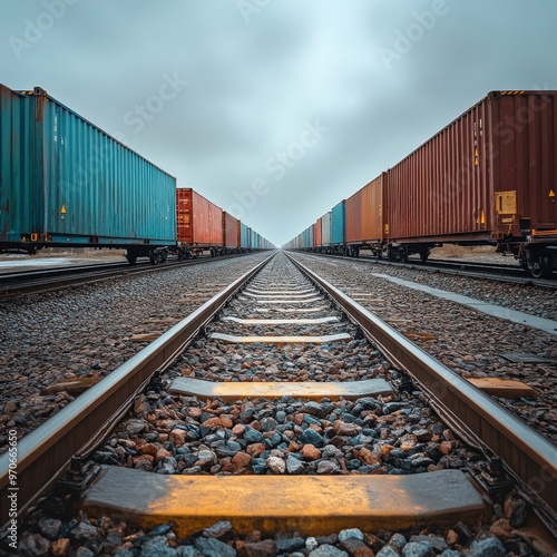Obraz premium Vibrant Cargo Train With Shipping Containers