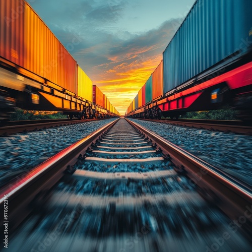 © BG_Illustrations, Obraz premium Vibrant Cargo Train With Shipping Containers