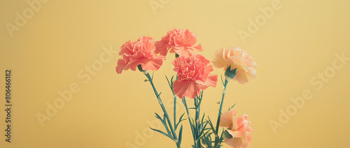 © Moon, Naklejka premium Vibrant Carnations on a Soft Yellow Background