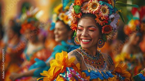 Fototapeta premium Vibrant Carnival Celebration with Joyful Dancer in Festive Costume....