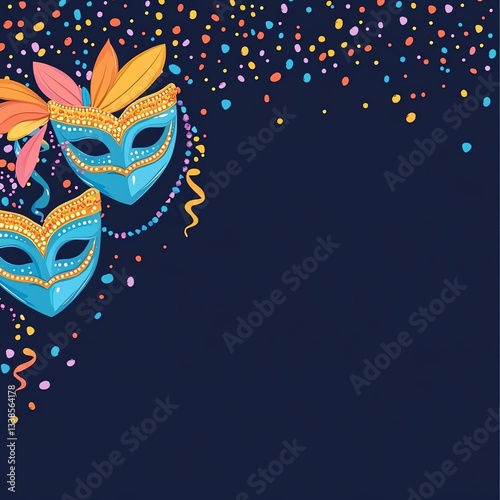 Obraz premium Vibrant carnival masks with colorful feathers and festive confetti, perfect...