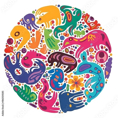 © Eatu, Fototapeta premium Vibrant Cartoon Animals in Circular Pattern.