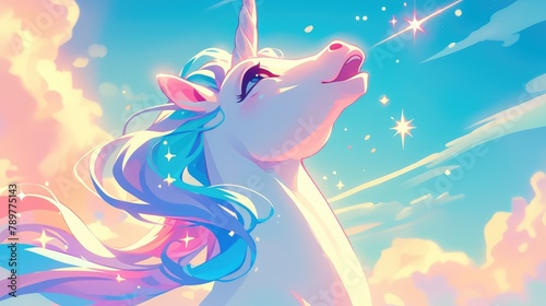 Obraz premium Vibrant cartoon rendering of a playful unicorn
