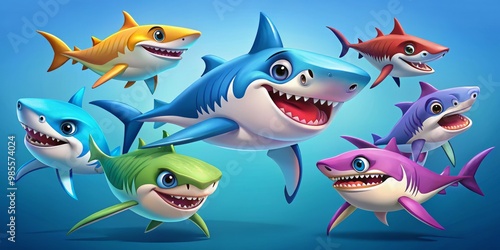 Obraz premium Vibrant cartoon shark characters perfect for playful illustrations and...