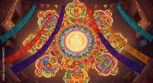 Obraz premium Vibrant ceiling decoration with intricate designs and colorful patterns in a...