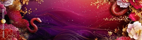 Obraz premium Vibrant Celebration Design Featuring Gradient Red and Purple Background with Floral Elements and Snake Motif