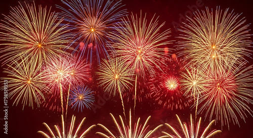 Naklejka premium Vibrant celebration fireworks display illuminating the night sky with...