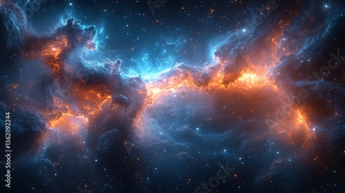 © Zikie_, Naklejka premium Vibrant celestial nebula displays a rich array of cosmic colors