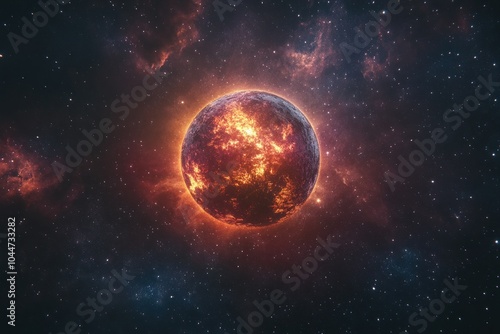 Naklejka premium Vibrant Celestial Planet Surrounded by Nebulae
