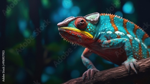 © nakama, Fototapeta premium Vibrant Chameleon Close-Up