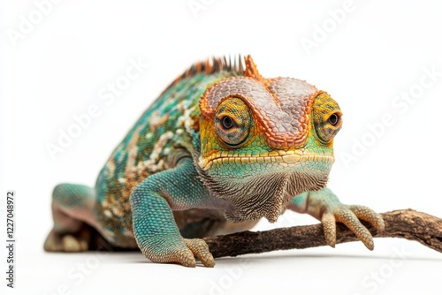 © Zahra, Obraz premium Vibrant chameleon on white background