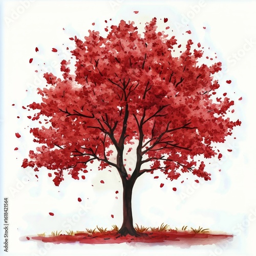 Fototapeta premium Vibrant Cherry Blossom Tree Spreading Petals in a Tranquil Spring Setting.
