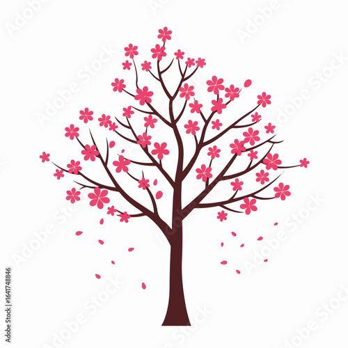 Obraz premium Vibrant Cherry Blossom Tree Vector Illustration with Pink Flowers and Falling...