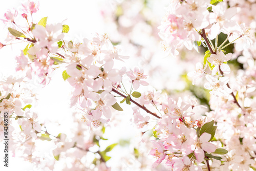 Obraz premium Vibrant Cherry Tree Blooming in Spring Sunlight, Pink Blossoms and Nature Renewal Concept