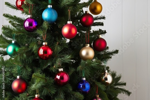 Fototapeta premium Vibrant Christmas Tree Ornaments on White Background
