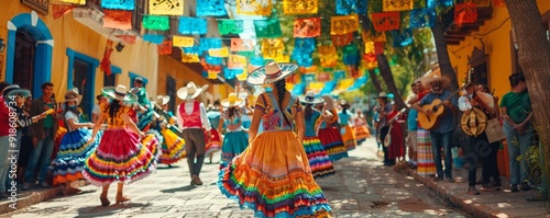 Fototapeta premium Vibrant Cinco de Mayo Fiesta Mariachi Bands Folk Dancers and Festive Decorations in Stunning Detail Captured