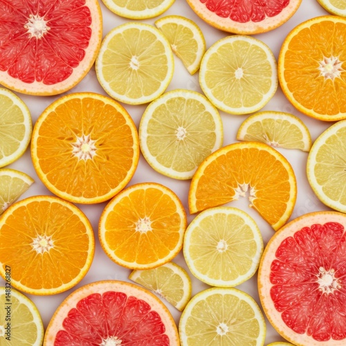 Fototapeta premium Vibrant Citrus Fruit Slices on White Background