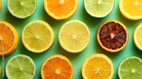 Fototapeta premium Vibrant Citrus Medley - A Colorful Array of Fresh Fruit Slices.