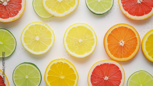 Obraz premium Vibrant Citrus Pattern Colorful Slices on a Clean White Background