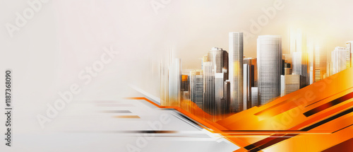 Obraz premium Vibrant city business banner showcasing modern skyscrapers and dynamic design elements