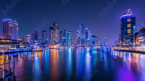 © INO K, Fototapeta premium Vibrant City Lights Over Downtown Waterfront