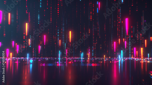 Obraz premium Vibrant City Lights Reflection on Water at Night