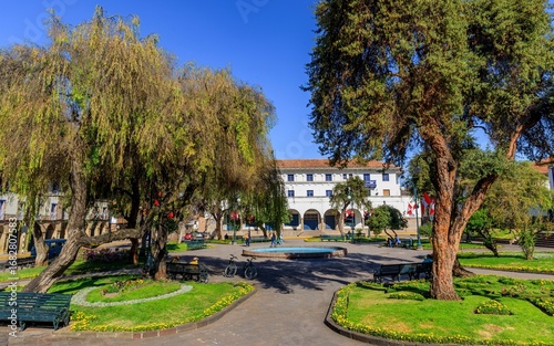 Fototapeta premium Vibrant city park in Cusco, Peru.