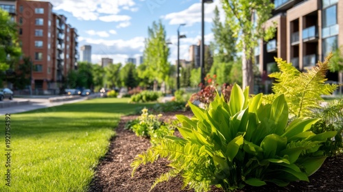 Fototapeta premium Vibrant City Park Transformation in Vacant Lot with Lush Greenery and Sunshine