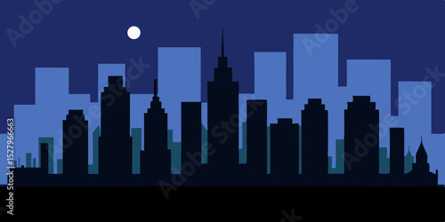 Fototapeta premium Vibrant City Skyline Animation Cartoon Video Background at Night Vector