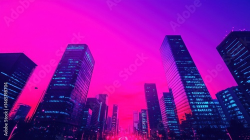 Obraz premium Vibrant City Skyline at Dusk with Neon Lights and Colorful Skies