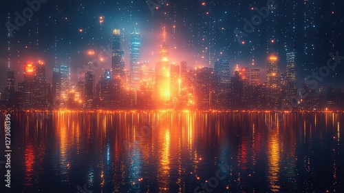 © Wiseman, Naklejka premium vibrant city skyline at night captivating 4k wallpaper with colorful lights and dynamic urban atmosphere city skyline at night generative ai