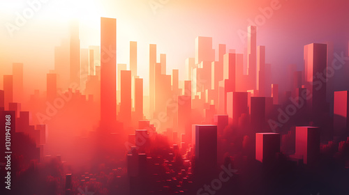 © xuan, Fototapeta premium Vibrant city skyline at sunset