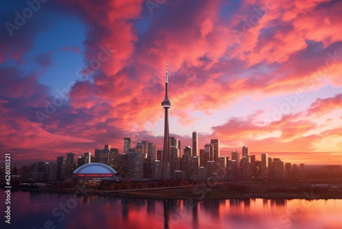 © Starlight, Naklejka premium Vibrant City Skyline At Sunset, Generative AI