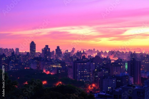 © saefur, Obraz premium Vibrant city skyline at sunset, showcasing urban beauty and tranquility.